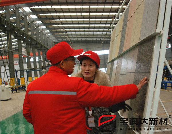 參觀生產(chǎn)線過程中,寶潤達系統(tǒng)綠色節(jié)能建材產(chǎn)品贏得客戶大力認可,寶潤達自動化生產(chǎn)制造、現(xiàn)場管理等各方面也給客戶留下了深刻印象。
