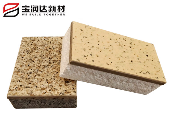 飾面效果: 寶潤達一體板飾面層采用{真石漆,多彩漆,水包水,水包沙,乳膠漆,實色/金屬氟碳},超3000種顏色定制,可根據(jù)石材定做樣品;