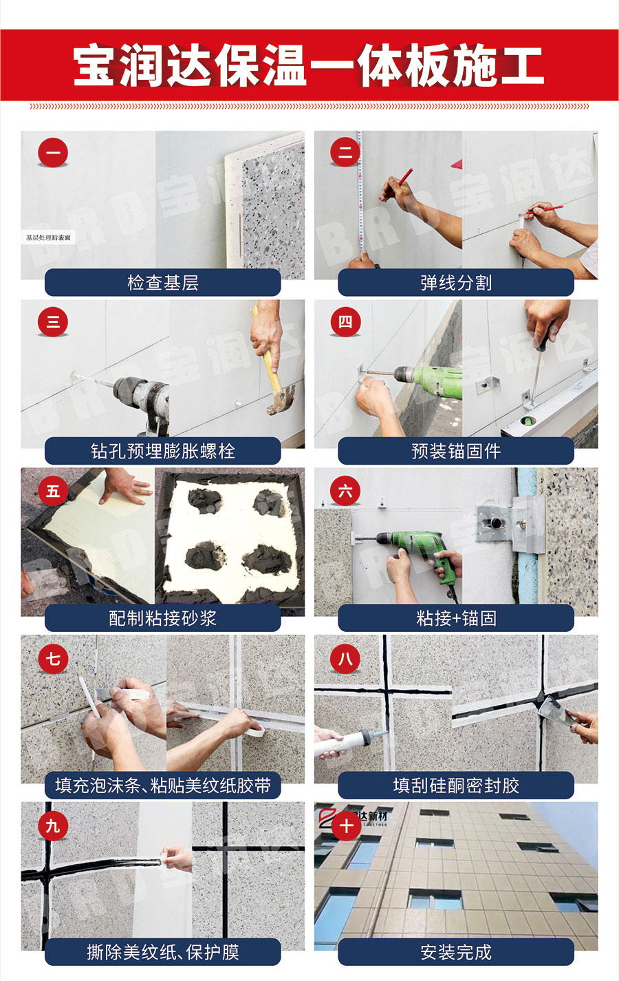 寶潤達保溫一體板施工步驟-粘貼錨固